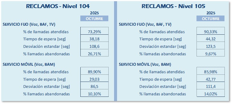 A continuación, te damos a conocer los indicadores de servicio de la plataforma de Niveles 104 + 105, para el mes de octubre 2025.