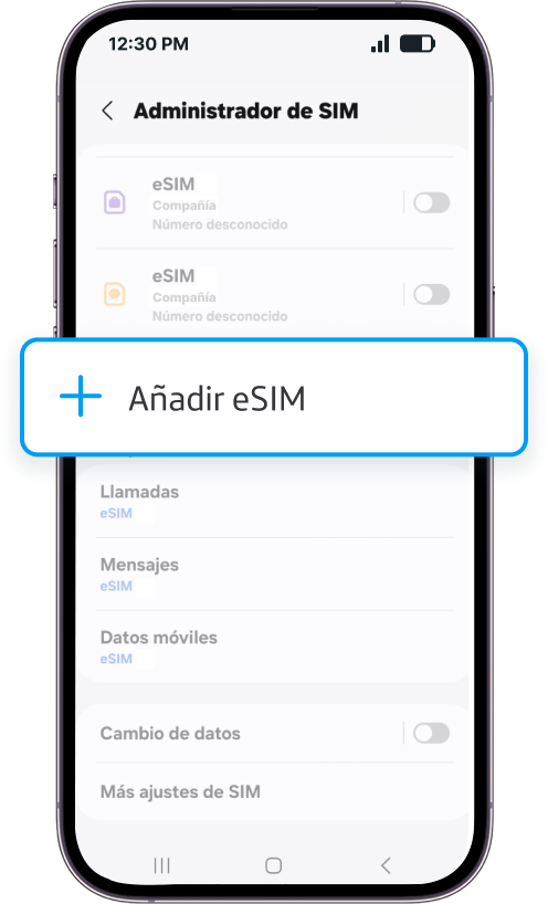 Activar eSIM en Android: Ajustes → Conexiones → Administrador de SIM → Añadir eSIM → escanea el QR.