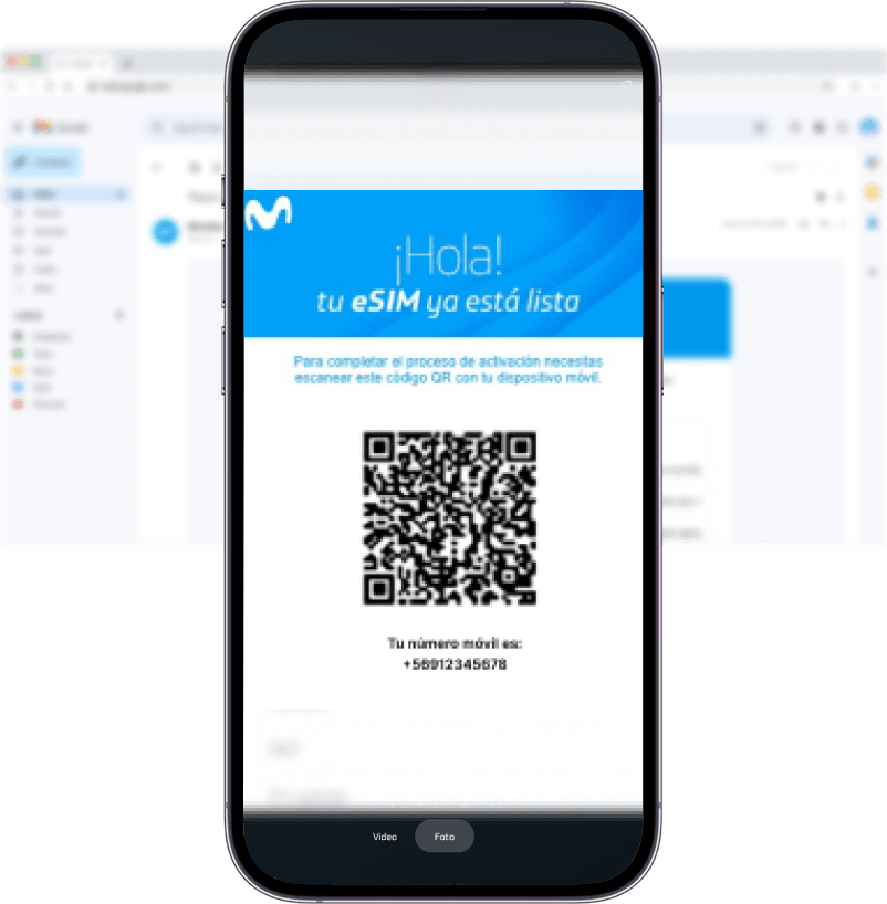Contrata en planes móviles y te enviamos el código QR por correo para activar eSIM en tu teléfono. Puedes llevar el número personal y el del trabajo en el mismo equipo (Dual SIM con eSIM).