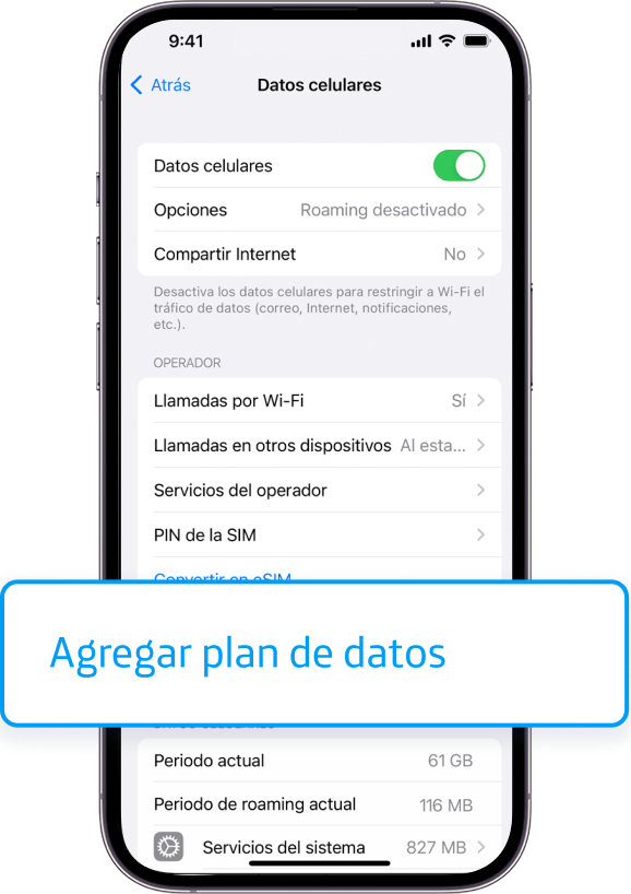 Activar eSIM en iPhone: Ajustes → Datos celulares → Añadir plan → escanea el QR.